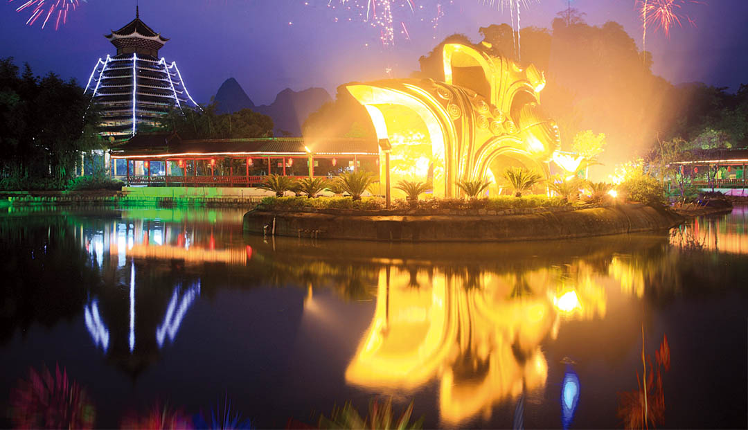 桂林经典刘三姐大观园景区,坐落在美丽的桃花江畔,东靠西山,西望甲山。景区以壮族歌仙刘三姐命名,是一座展示刘三姐文化及广西壮、瑶、苗、侗四大民族精化为主的风情旅游示范点,也是国家4A级旅游景区。